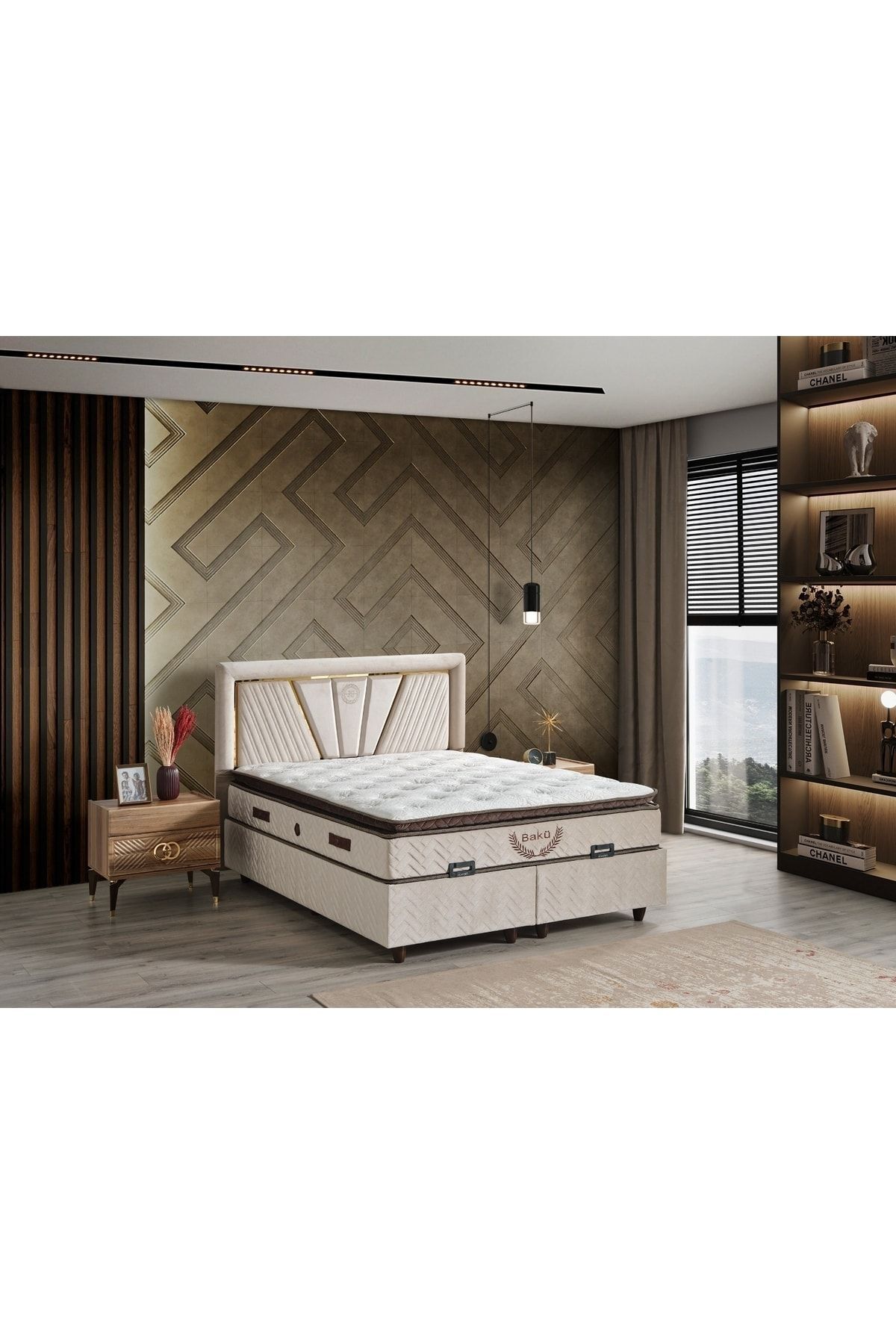 - Modern tasarımıyla yatak odanızın atmosferini yenileyen 150 x 200 bakü baza yatak başlık seti, şıklığı ve konforu bir arada sunar; - Set tipi olarak baza, başlık ve yatak içeren bu ürün, yatak odanızda ihtiyacınız olan tüm parçaları tek pakette sunarak