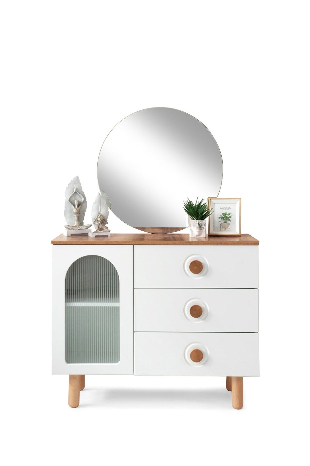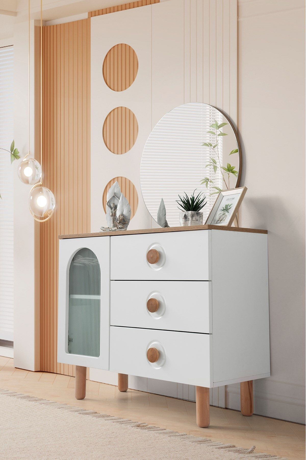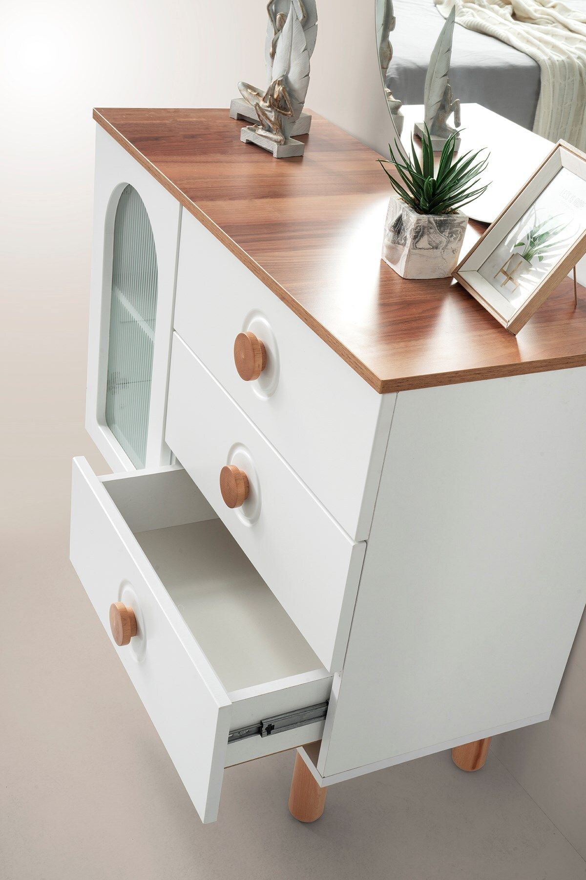 Modern tasarımıyla evinizin dekorasyonuna şıklık katan Alya mdf şifonyer ve ayna, hem fonksiyonel hem de estetik bir kullanım sunar; Aynalı yapısı sayesinde hem kıyafetlerinizi seçerken hem de günlük hazırlıklarınızda kolaylık sağlar; 2 yıl garanti süresi