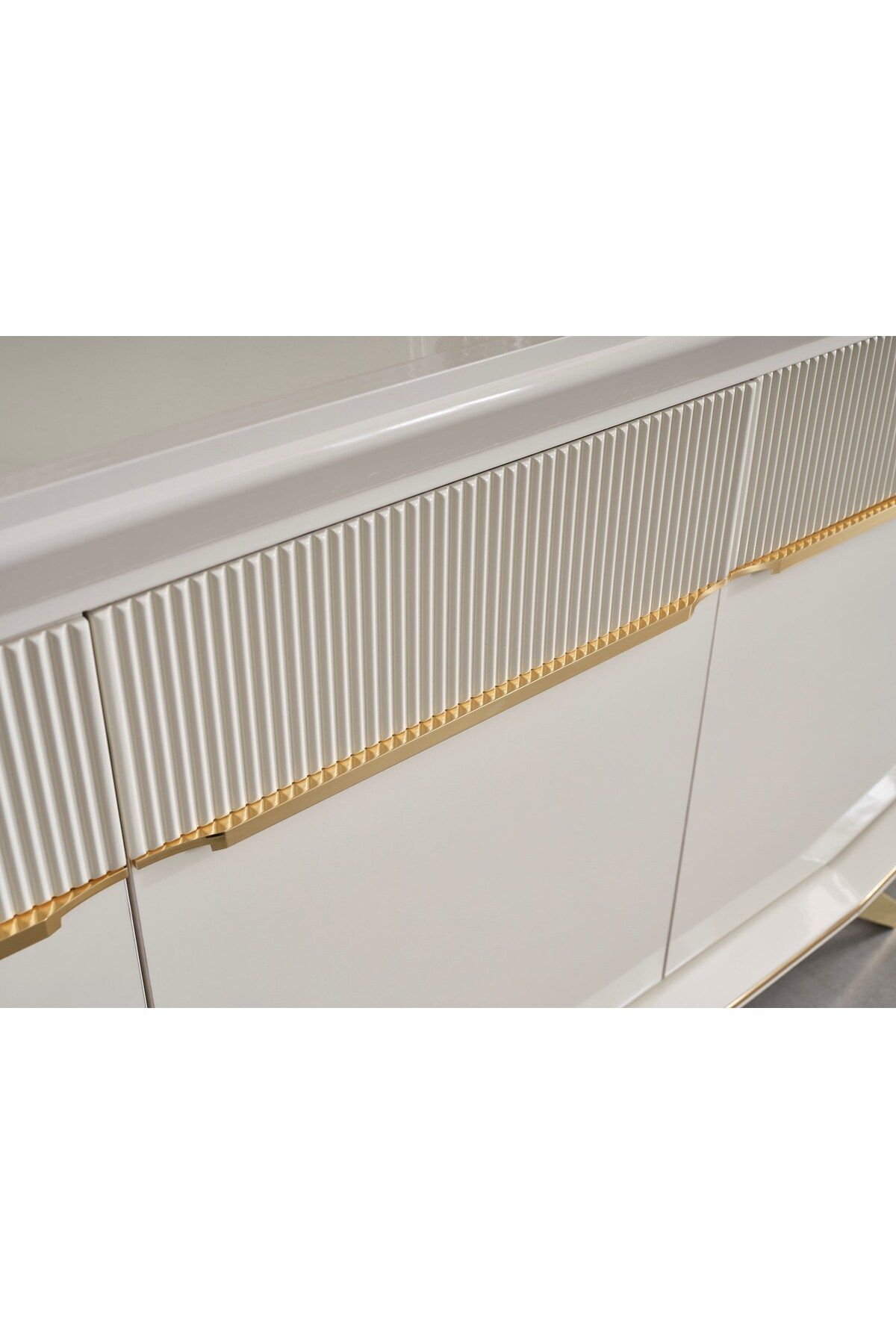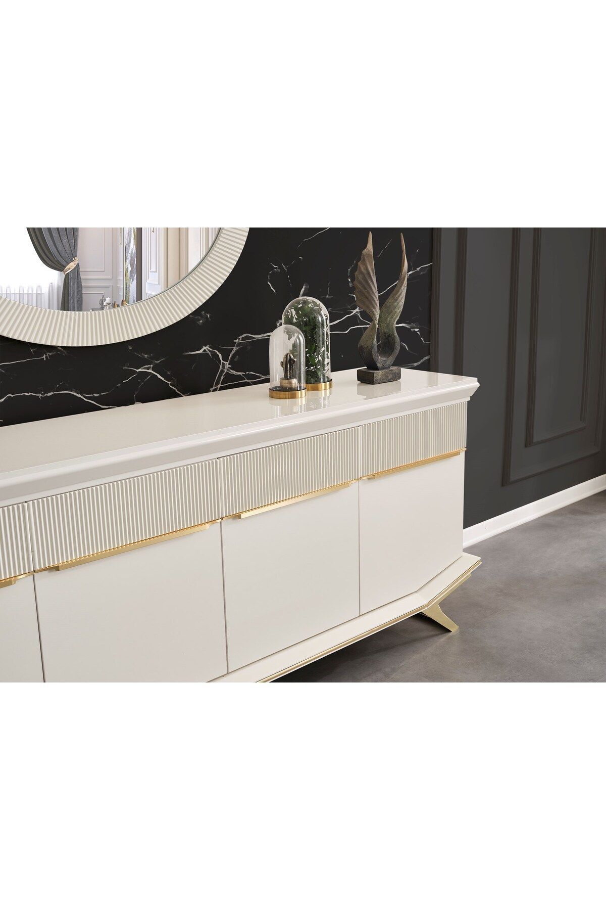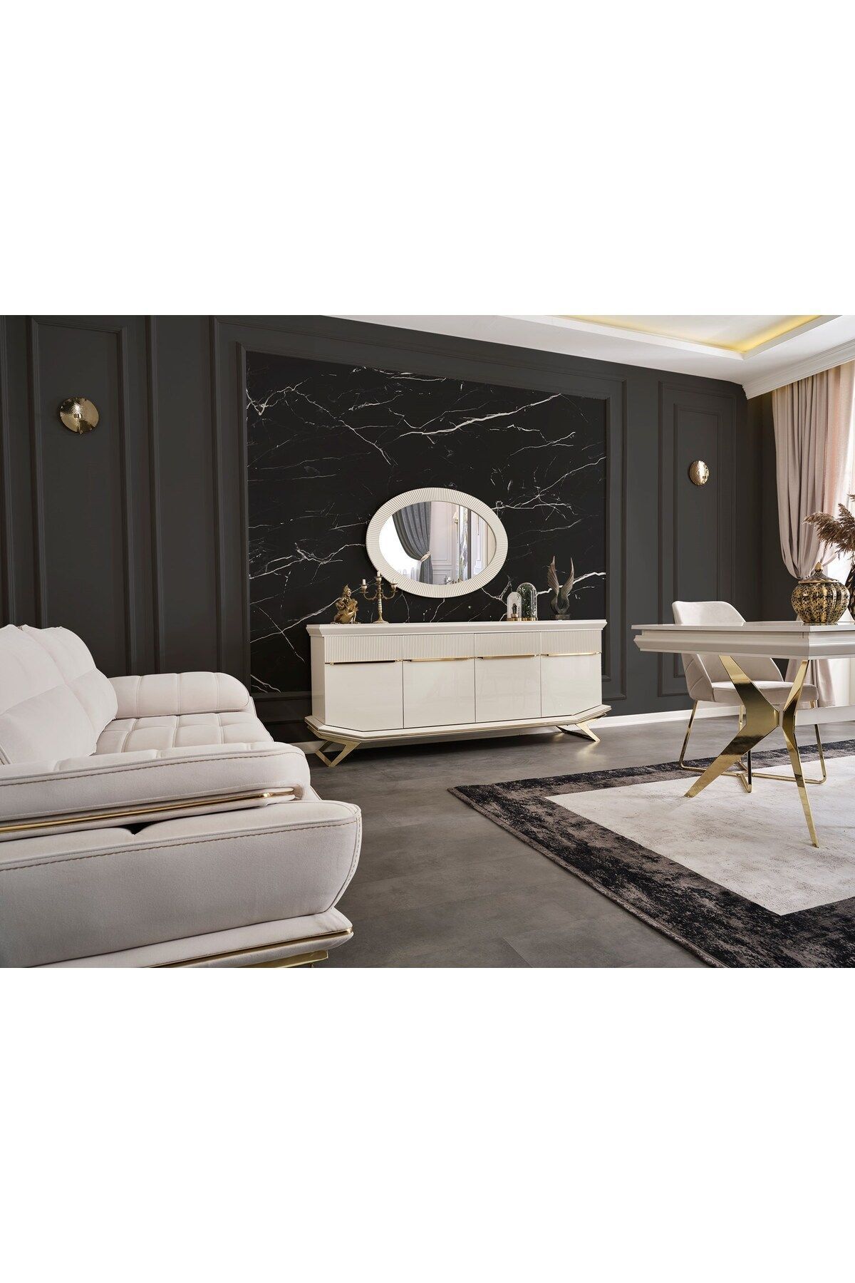- Modern tasarımıyla dikkat çeken Angel gold yemek odası takımı, şık ve çağdaş bir görünüm sunar; - Açılır masa fonksiyonu sayesinde, ihtiyaç duyulduğunda ekstra konuklarınız için kolayca genişletilebilir ve pratik bir kullanım sağlar; - Sandalyelerde kul