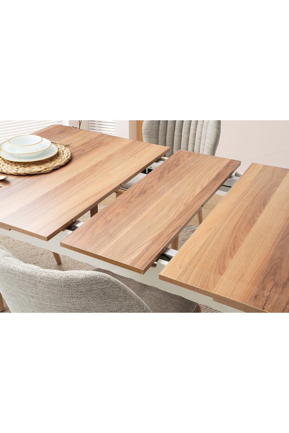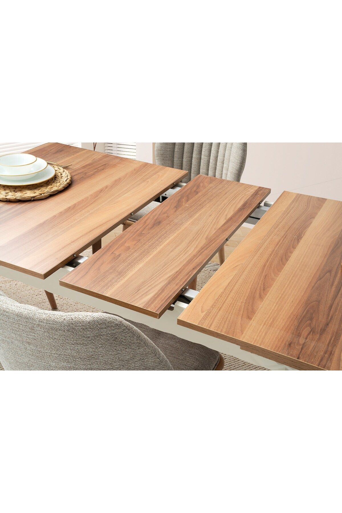 Ahşap ayak yapısı ile sağlam ve dayanıklı bir kullanım sunar; Dikdörtgen tasarımı, geniş yüzey alanı sayesinde aile yemekleri ve toplantılar için idealdir; Açılır; kapanır fonksiyonu ile alanınıza göre boyut ayarlama imkanı sağlar, böylece küçük alanlarda