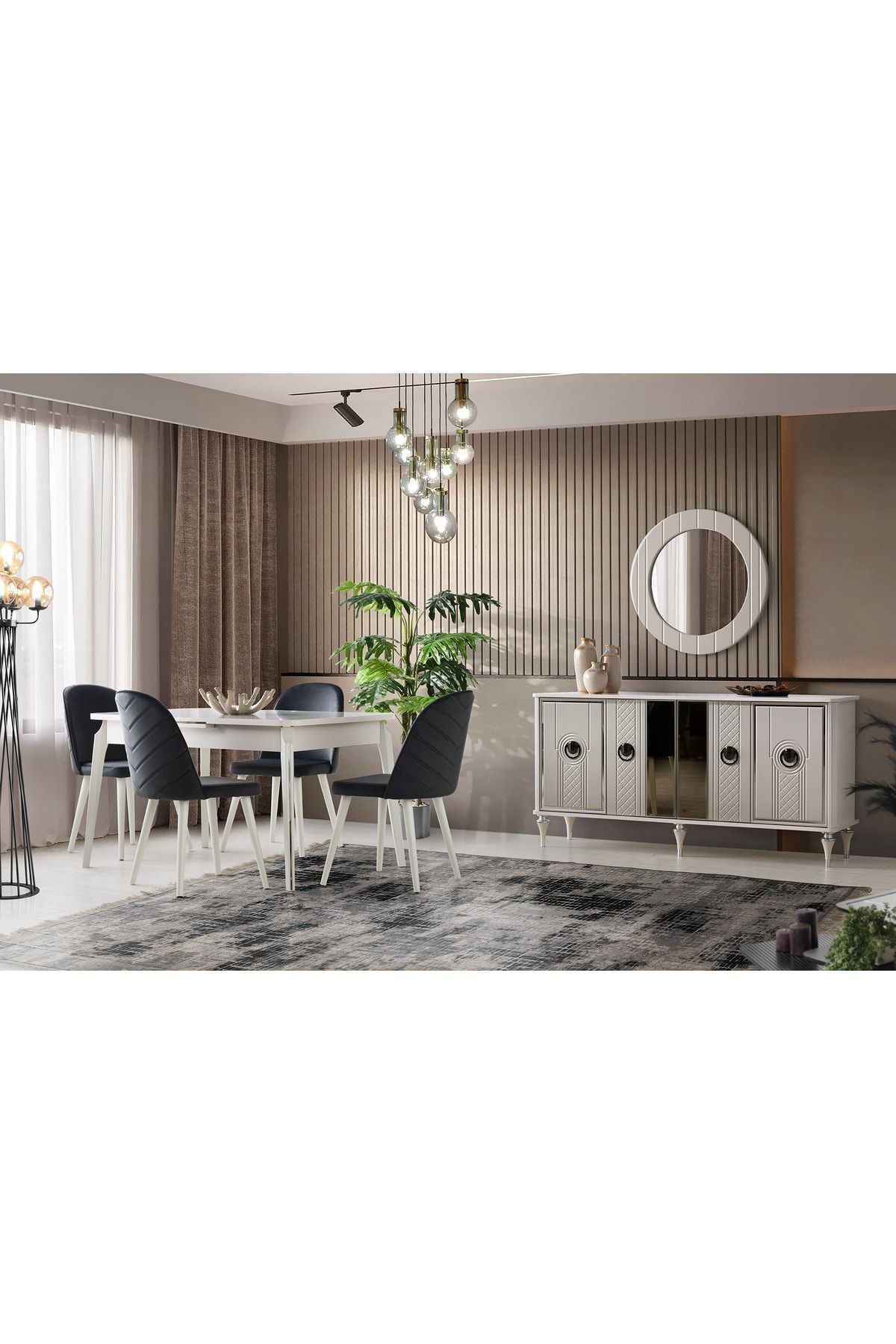 Modern tasarımıyla dikkat çeken Bahar mdf yemek odası takımı, evinizin dekorasyonuna şık bir dokunuş katıyor; 2 yıl garanti süresi ile uzun ömürlü kullanım sunan bu takım, kalite ve dayanıklılığı bir arada garanti ediyor; Açılır masa fonksiyonu sayesinde,