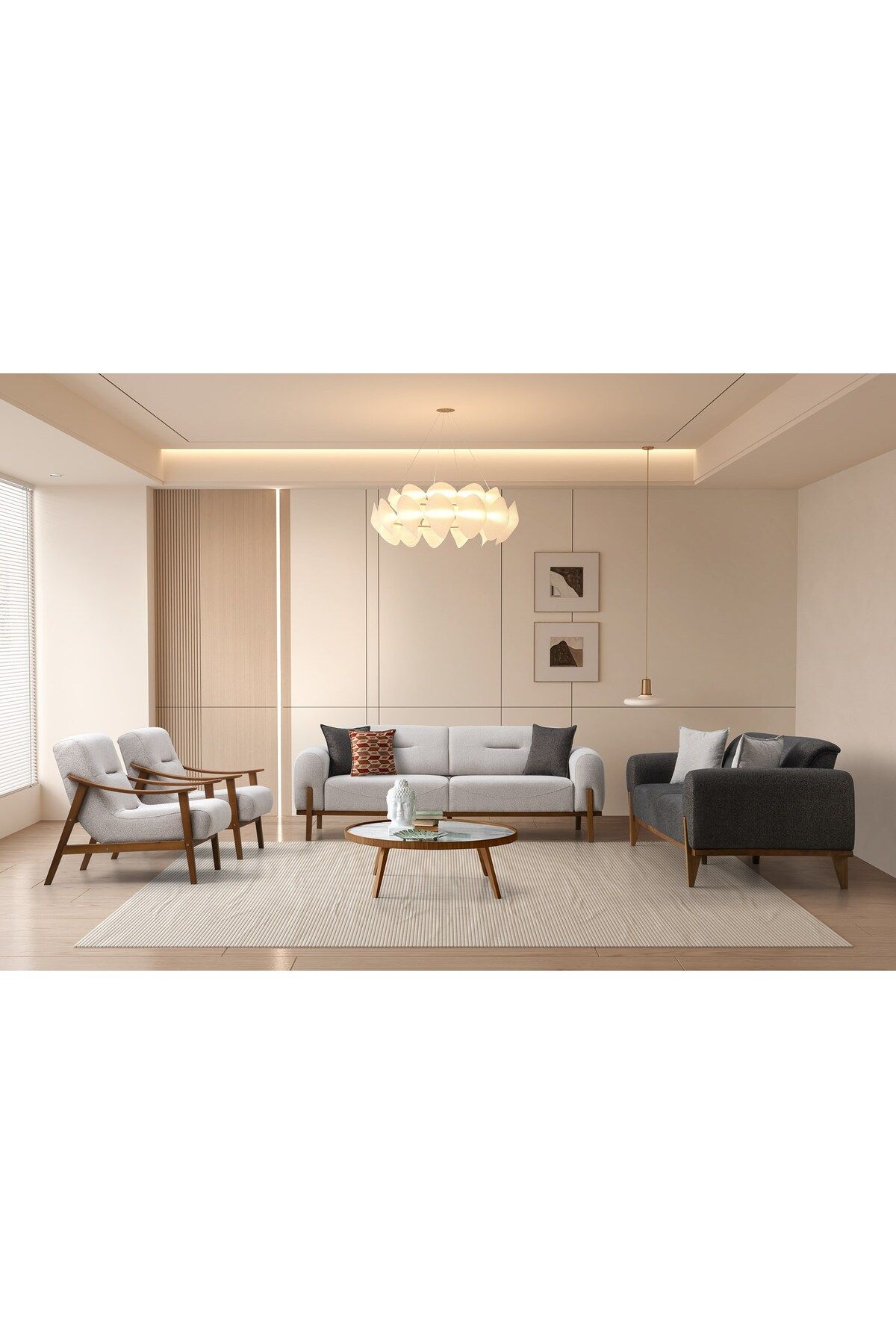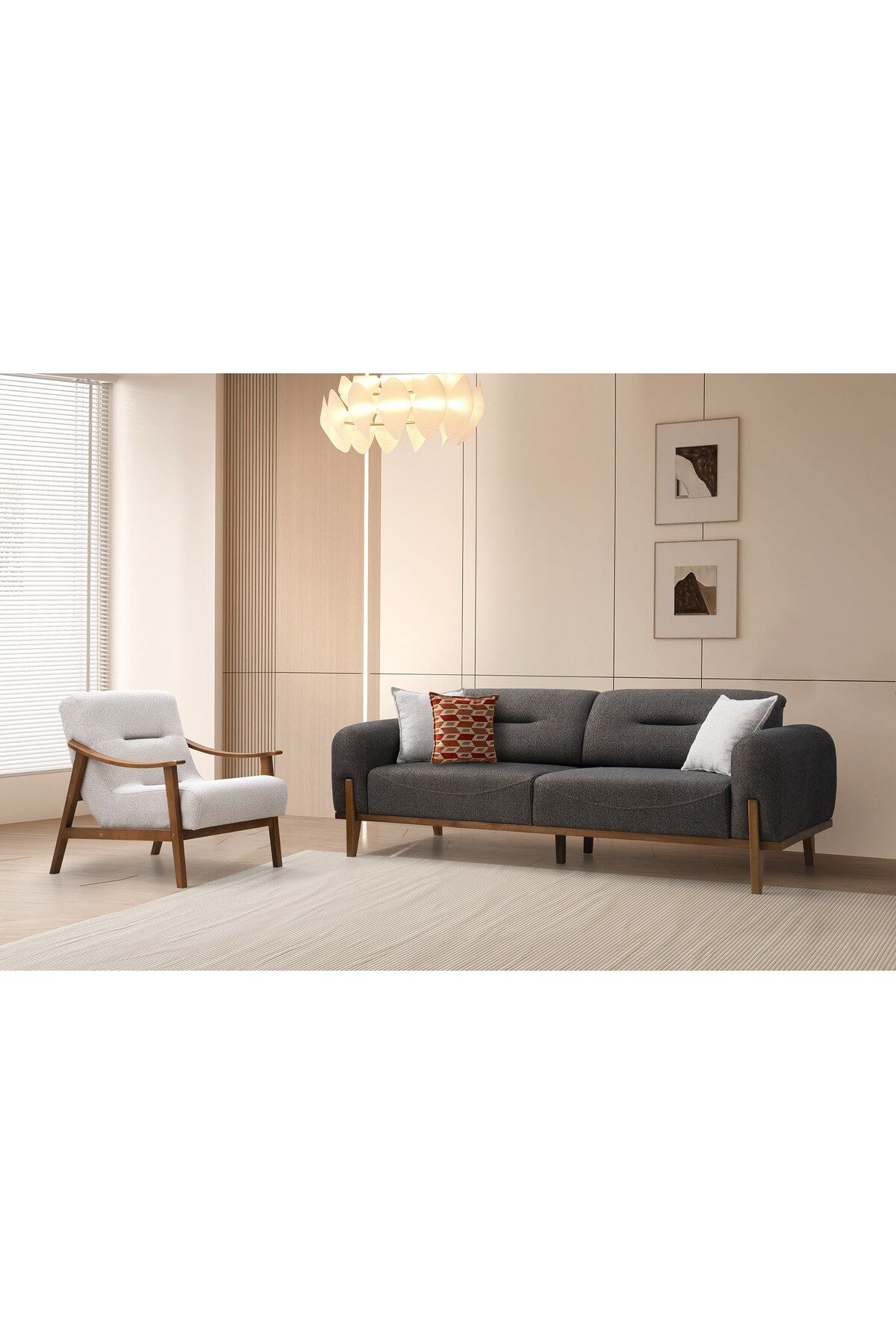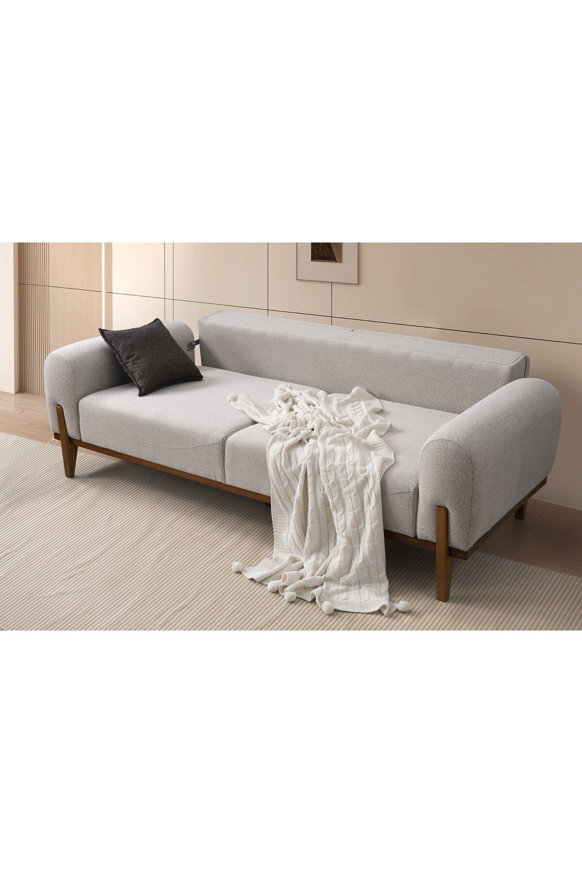 Modern tasarımıyla evinizin dekorasyonuna şık bir dokunuş katar; - Dayanıklı ahşap materyal kullanımı, uzun ömürlü ve sağlam bir yapı sağlar; - Ahşap ayak malzemesi, hem estetik hem de sağlamlık açısından idealdir; - Kadife kumaş kaplama, yumuşak dokusuyl