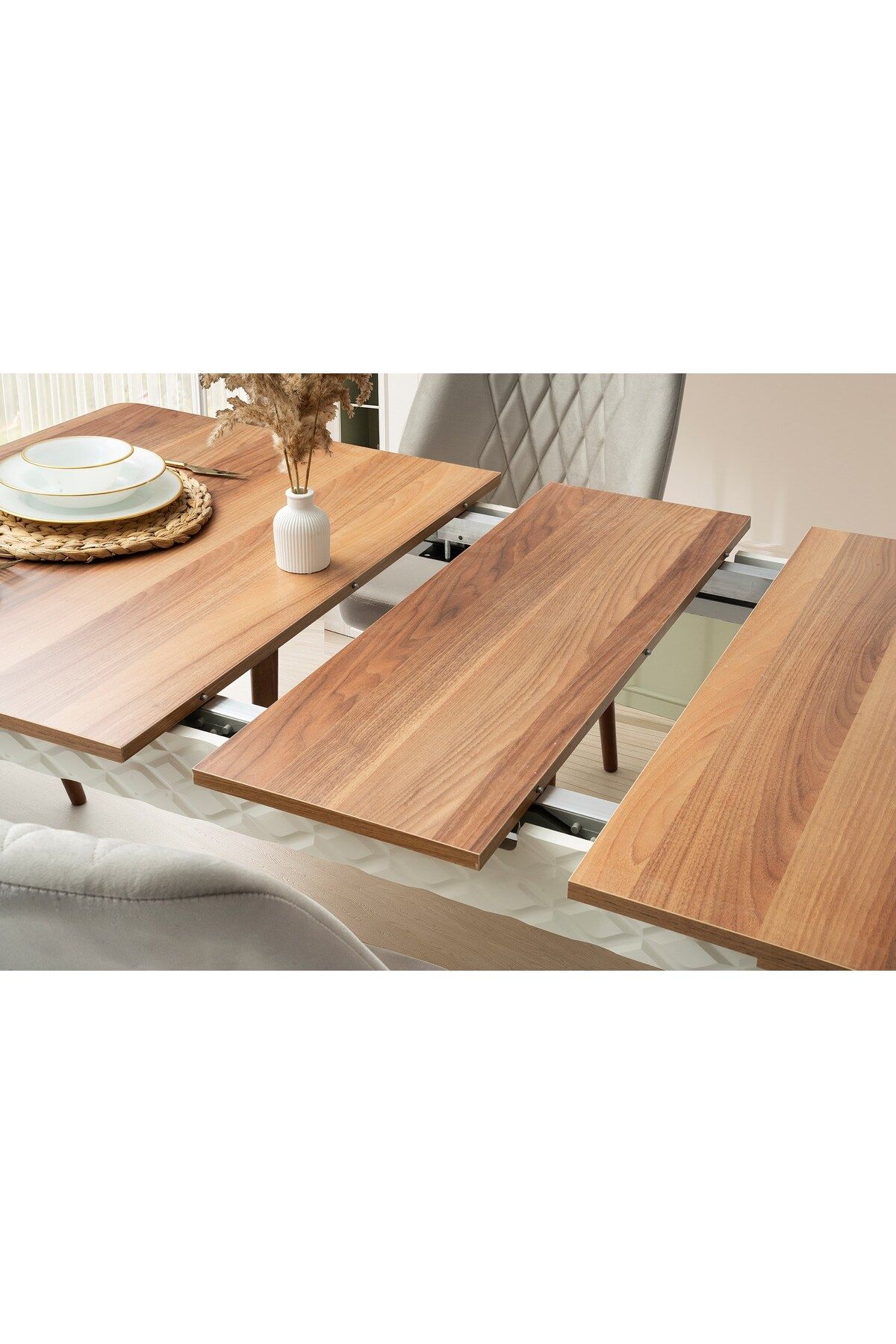 - Modern tasarımıyla dikkat çeken Çınar mdf yemek masası, evinizin dekorasyonuna şık bir dokunuş ekler; - Açılır-kapanır fonksiyonu sayesinde alanınıza göre boyutunu ayarlayabilir, ihtiyaç duyduğunuzda ekstra alan yaratmanızı kolaylaştırır; - Ahşap ayak y
