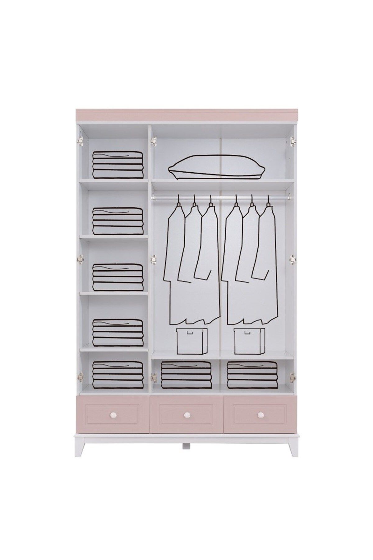 CITY 3 KAPILI DOLAP - BEYAZ PEMBE