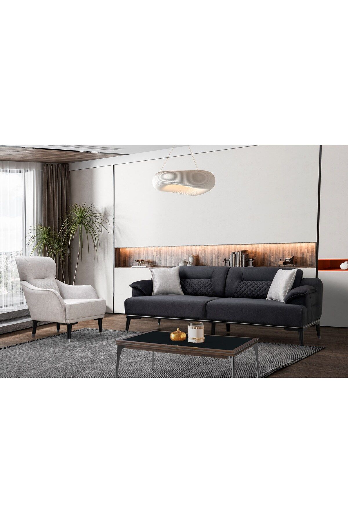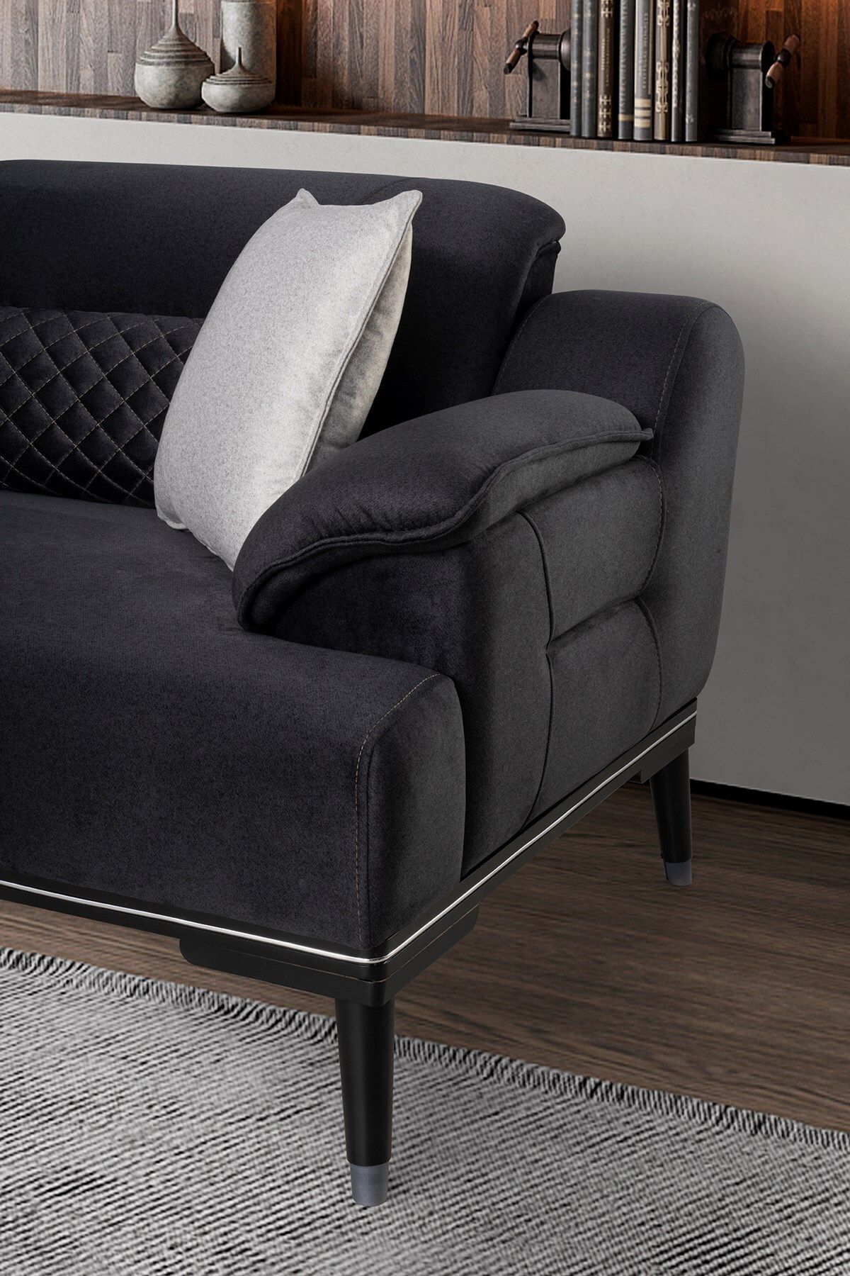 Modern tasarımı ve kaliteli ahşap gövdesiyle dikkat çeken Didim koltuk takımı, evinizin dekorasyonuna şık bir dokunuş katıyor.; Ahşap ayakları sayesinde dayanıklı ve sağlam yapıya sahiptir, uzun ömürlü kullanım vaat eder.; Koltuk takımı, modern stil anlay