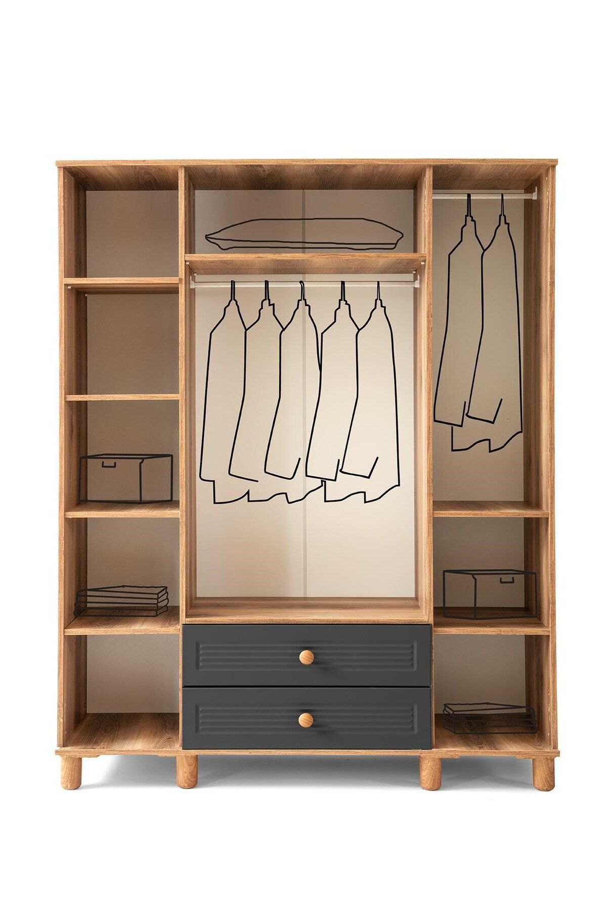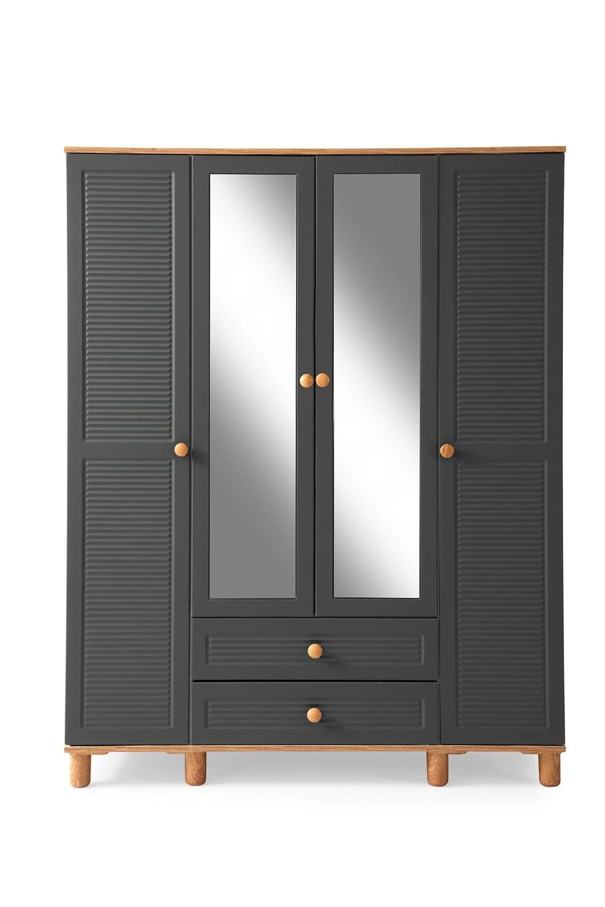 FİNİKE MDF 4 KAPILI DOLAP - ANTRASİT/CEVİZ