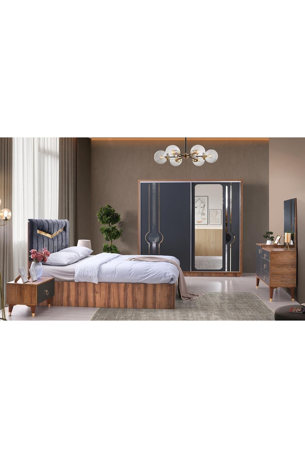 Takım İçeriği 1 adet gardırop, 1 adet şifonyer+Ayna ,2 adet komodin,1 adet baza,1 adet başlıktan oluşmaktadır Ürün Malzemesi Mdf Ayak Malzemesi Plastik Ayak Rengi Gold Renk Çeşitleri Ceviz,antarsit Fonksiyon Aynalı ve menteşeli Aydınlatma Özelliği Yok Baş