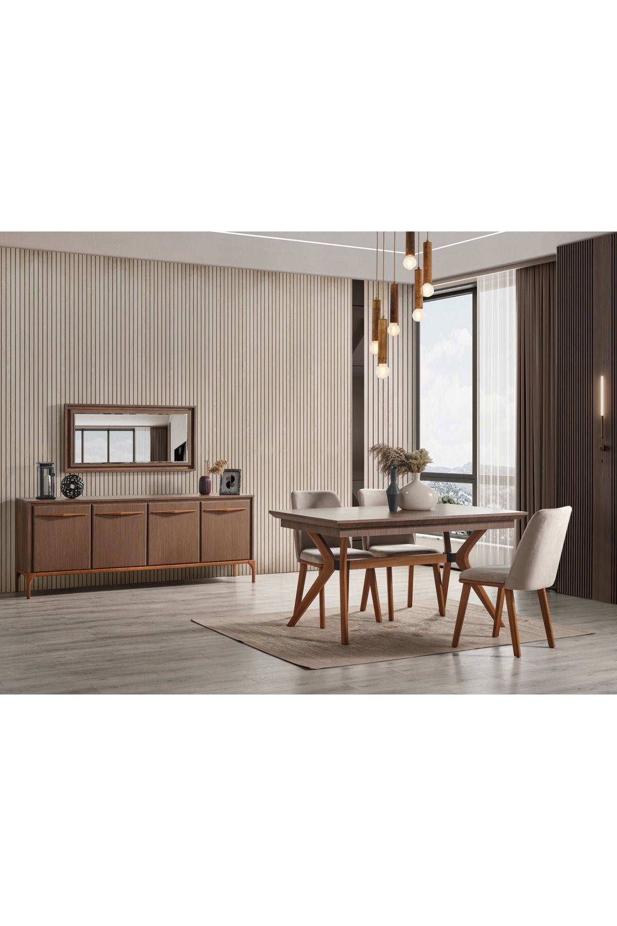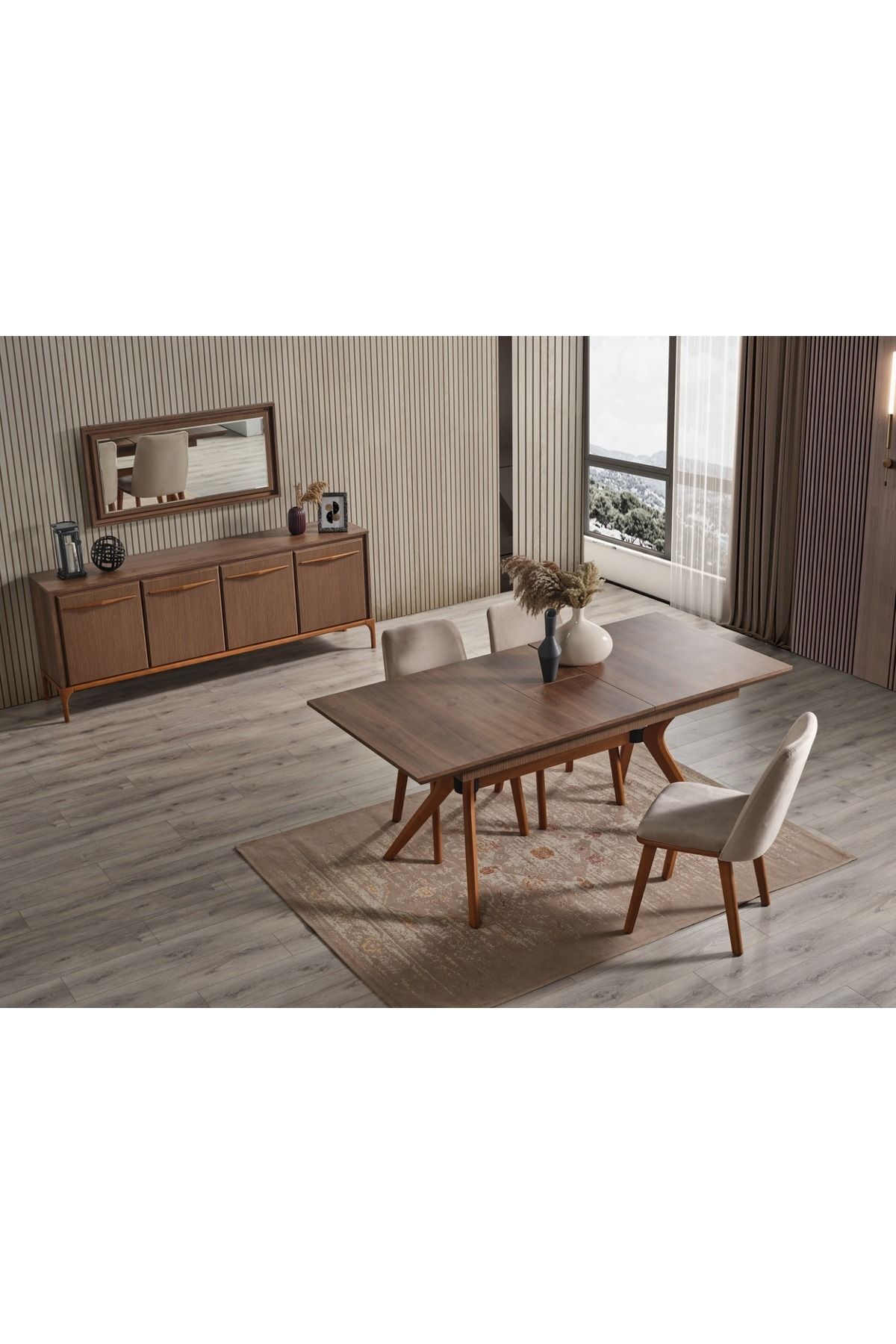 KONSOL VE AYNA + AÇILIR MASA+6 ADET SANDALYEDEN OLUŞUR.MDF&SUNTALAM MALZEMEDİR