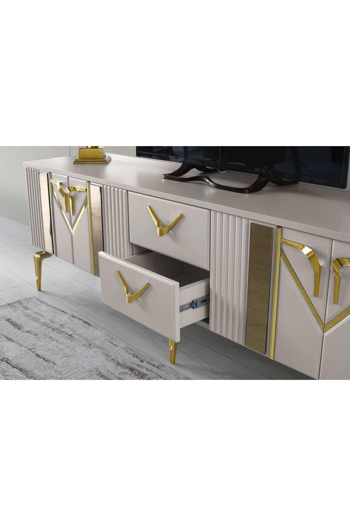 - Modern tasarımıyla evinizin dekorasyonuna şıklık katan Kosova mdf tv ünitesi, çağdaş yaşam alanlarının vazgeçilmez bir parçasıdır; - Duvara monte edilebilme özelliği sayesinde yerden tasarruf sağlar ve mekanınızda modern bir görünüm oluşturur;