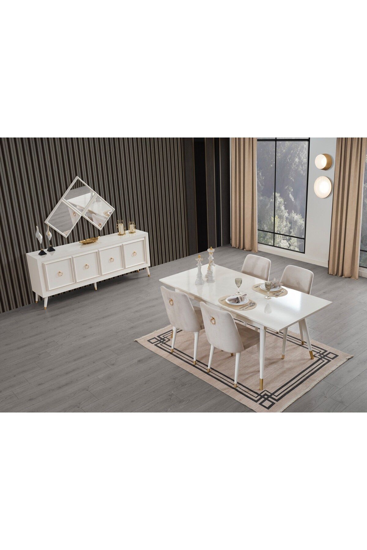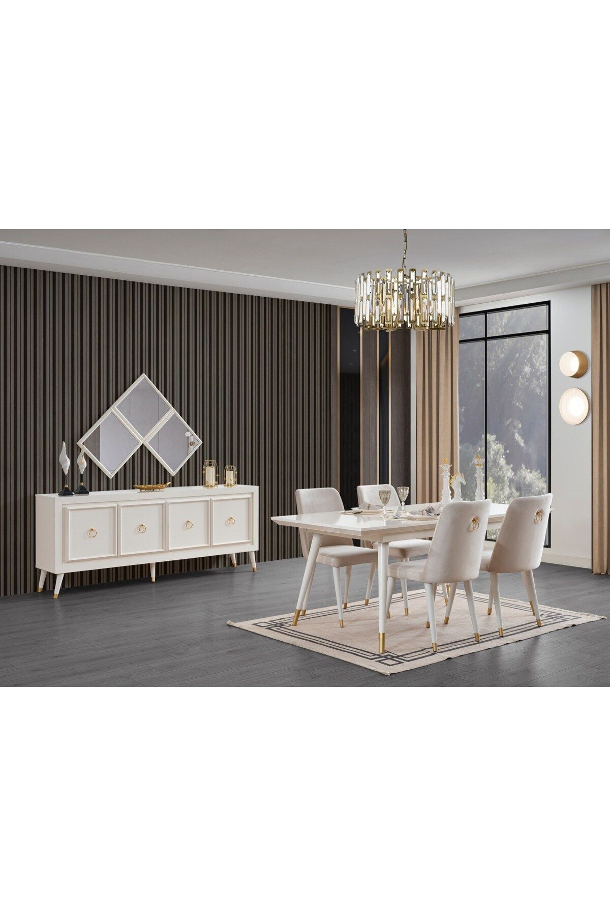 2 yıl garanti süresi ile uzun vadeli kullanım güvencesi sunar; Suntalam malzemesi sayesinde dayanıklı ve uzun ömürlü bir yapıya sahiptir; Sandalyelerde kullanılan kadife kumaş, yumuşak dokusuyla konforlu oturumlar sağlar; Modern tasarımıyla mekanınıza şık