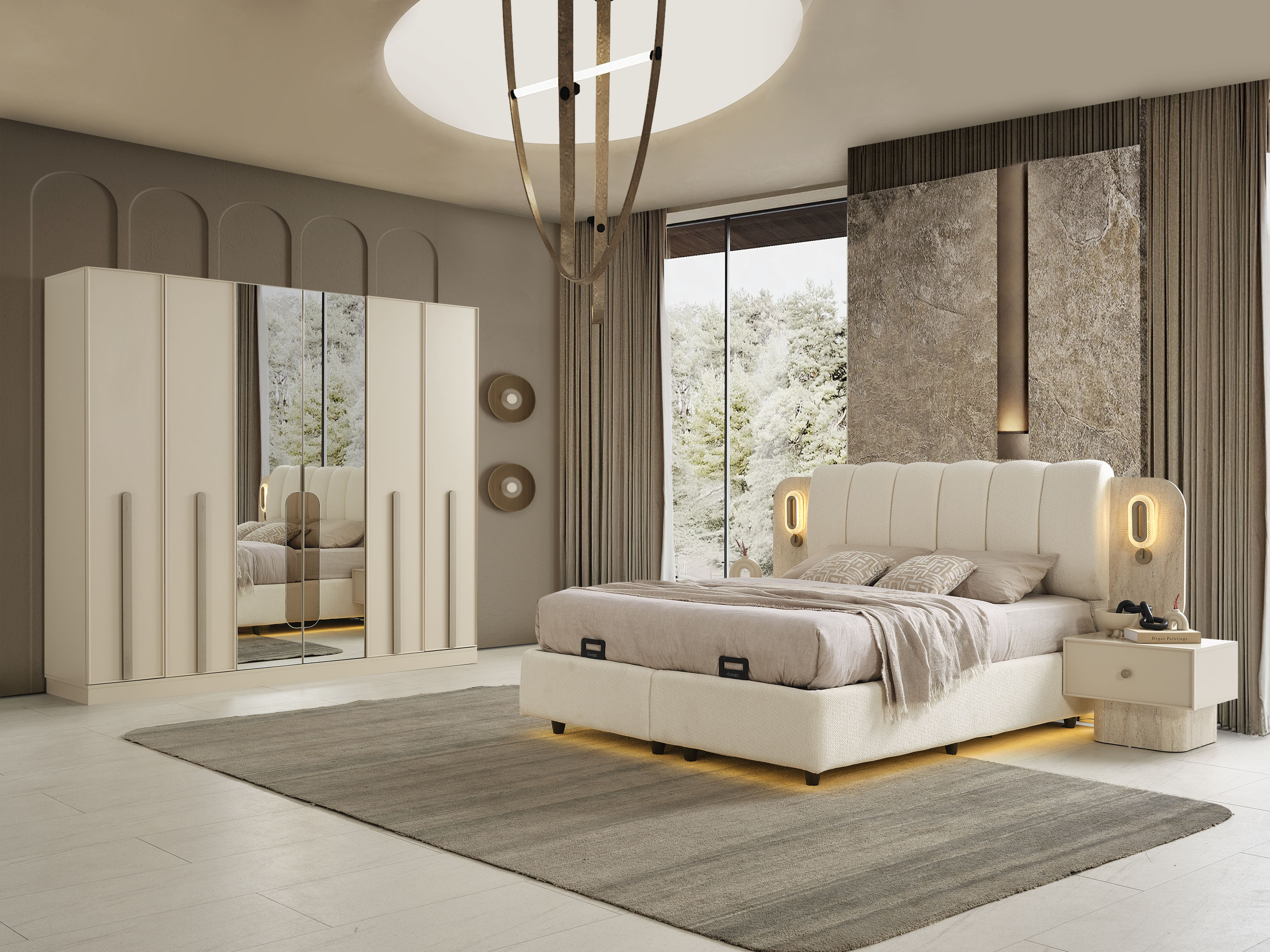 6 KAPILI DOLAP - ŞİFONYER VE AYNA - BAŞLIK - 2 KOMODİN FİYATIDIR.% 100 MDF MALZEMEDİR