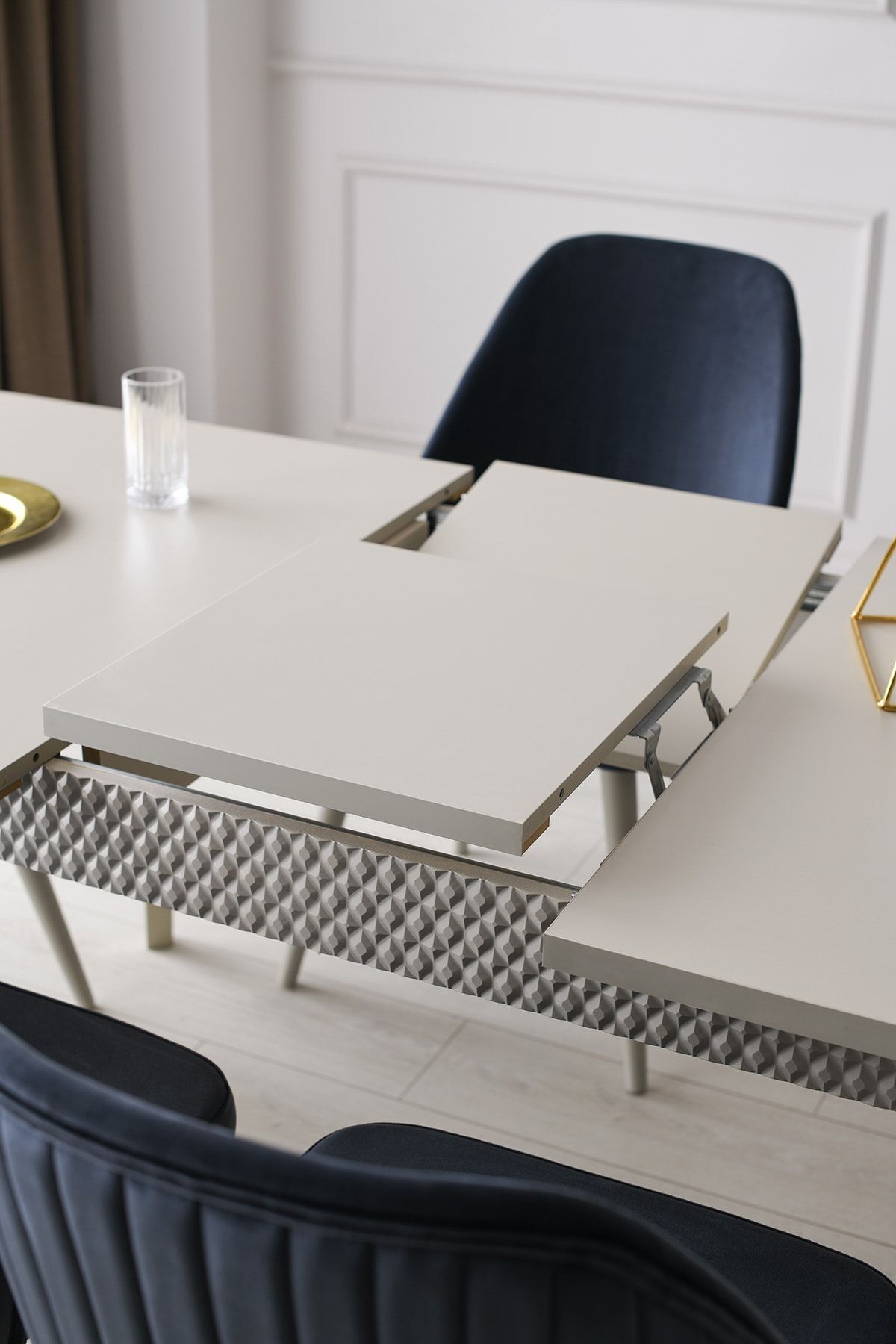 - Modern tasarımıyla dikkat çeken Marsilya mdf açılır yemek masası, yemek odanızın şıklığını artırır; - Sandalyelerde kullanılan kadife kumaş, yumuşak dokusuyla konforlu bir oturma deneyimi sunar; - Açılır masa fonksiyonu sayesinde, ihtiyaç duyulduğunda e