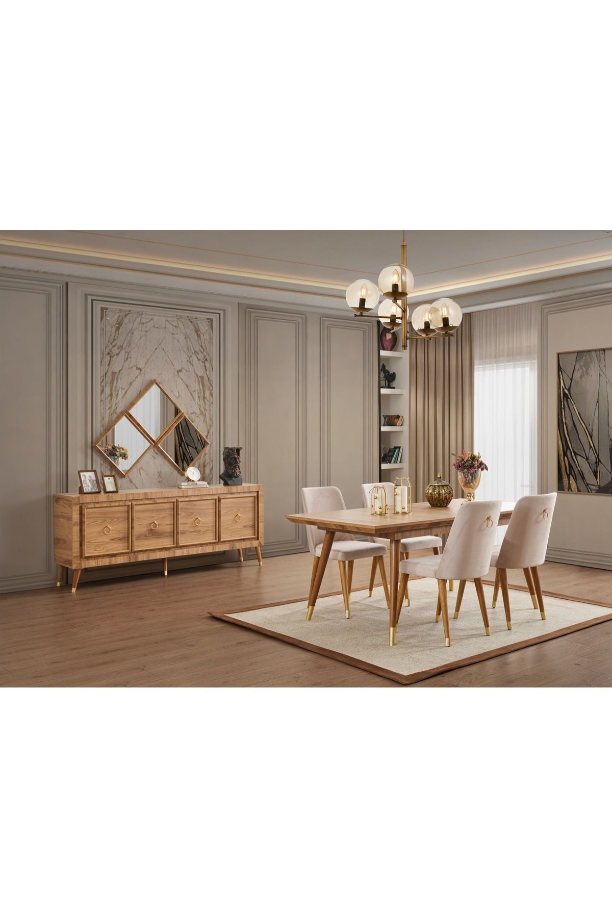 Yumuşak dokusu ve zarif görünümüyle dikkat çeken kadife sandalye kumaşı, yemek odanızın şıklığını artırır; Modern tasarımıyla evinizin dekorasyonuna çağdaş bir hava katan Pablo yemek odası takımı, mekanınıza çağdaş bir stil kazandırır; 2 yıl garanti süres
