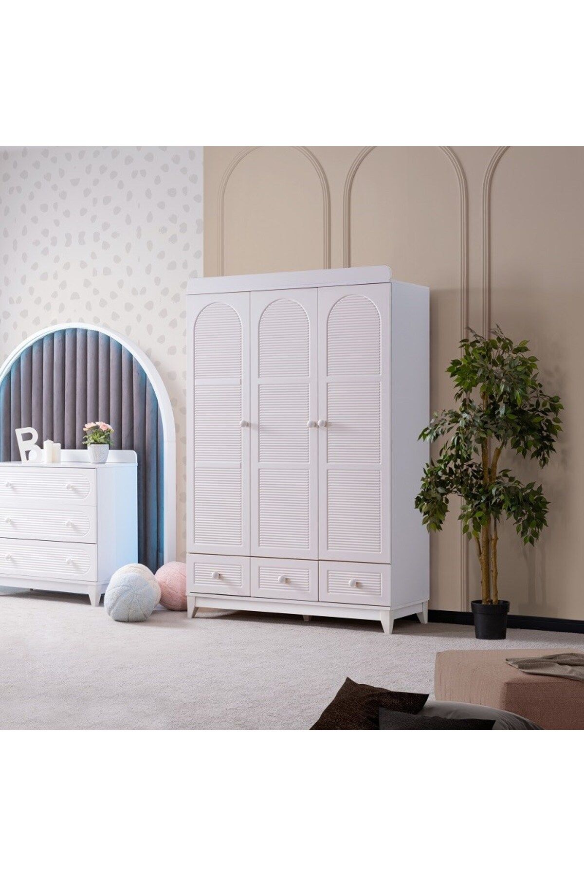 PERLA 3 KAPILI DOLAP - BEYAZ